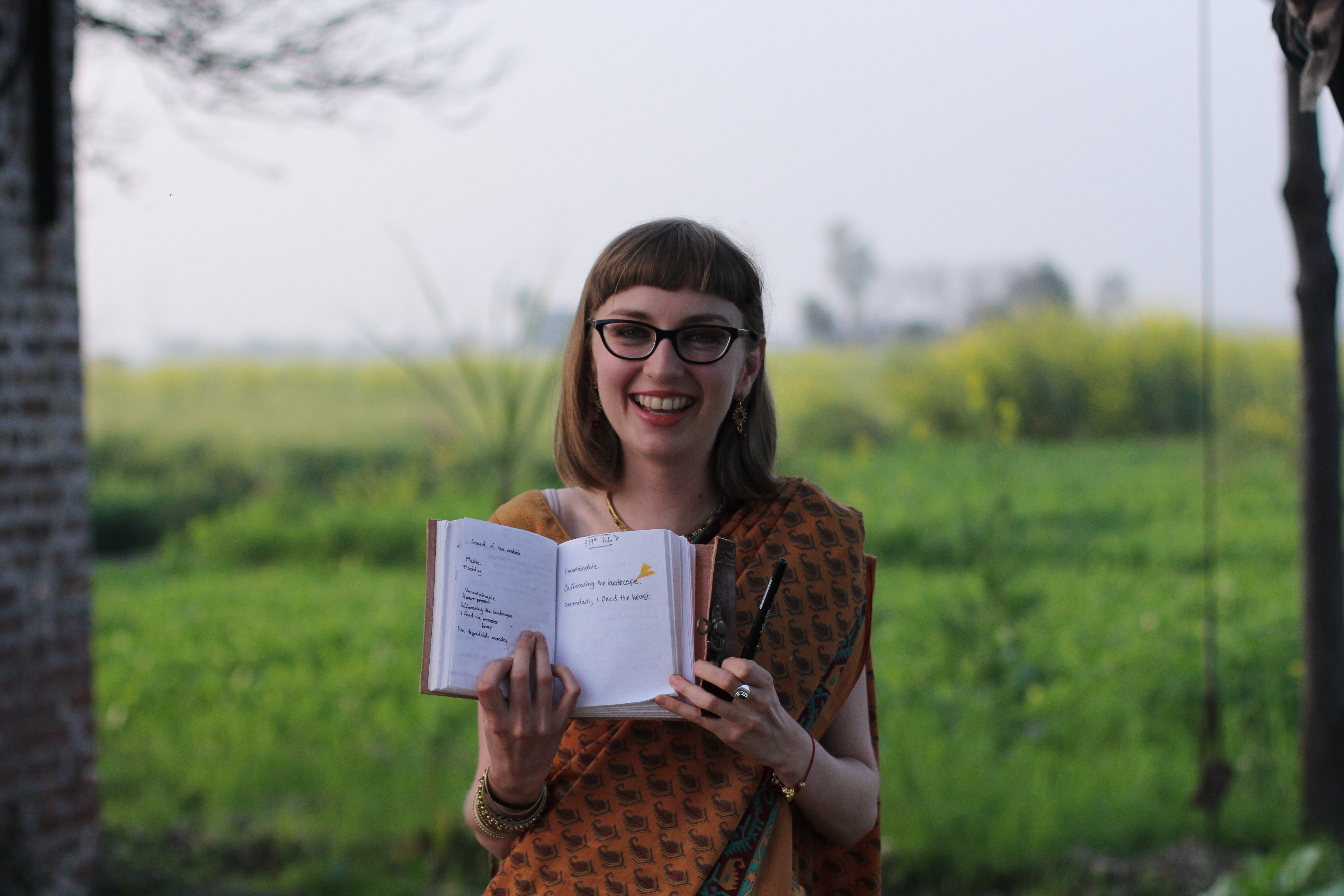 Piles of plastic wrappers line the streets in India but I didn’t get a chance to take a photo near one so I went with the opposite. In this photo I am on a farm in rural Punjab, behind me is a gorgeous field of mustard.